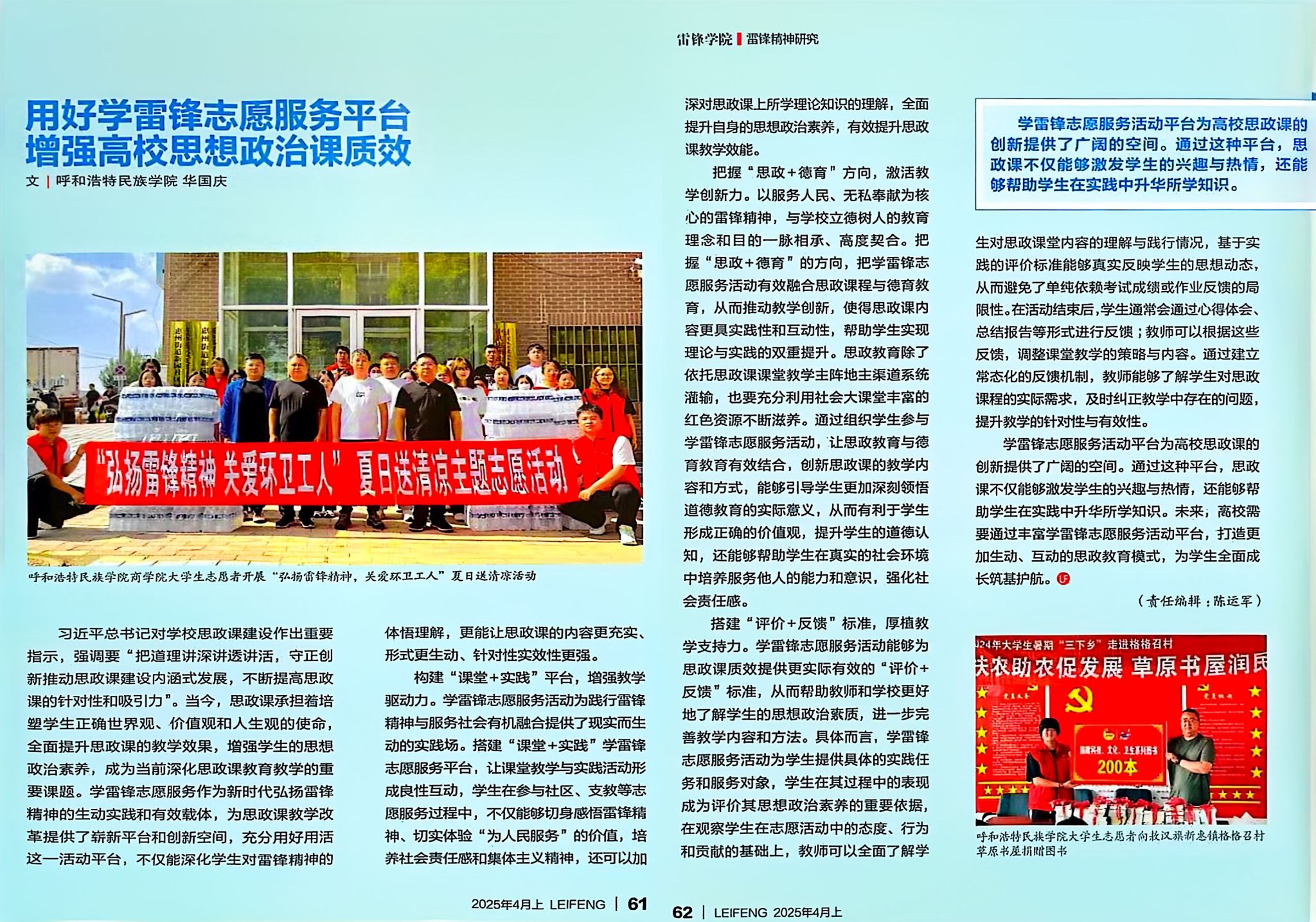 近日,《雷锋》杂志刊发best365商学院文章《用好学雷锋志愿服务平台 增强高校思想政治课质效》《青春锋行暖北疆——best365官网中文版登录大学生志愿者践行雷锋精神纪事》。《雷锋》杂志的报道,既体现了对best365践行雷锋精神志愿服务工作的肯定,也彰显了best365青年学子践行雷锋精神、勇担使命的责任担当。学校将秉持“知行合一”育人理念,构建“理论 + 实践 + 能力”培养体系,把社会实践融入人才培养全过程。通过强化组织保障、打造多元...