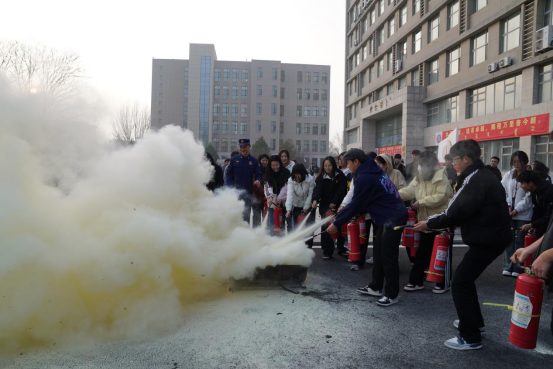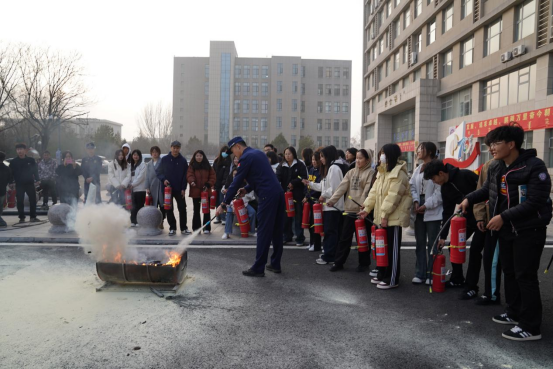 其次,在综合楼进行模拟火灾逃生演练,指导学生按照正确逃生路线迅速有序向安全区域撤离。随后在室外场地为师生详细讲解并示范灭火器、灭火毯的正确使用方法,大家积极参与灭火器实践操作,体验灭火过程,在紧急情况下迅速有效地扑灭初期火灾。