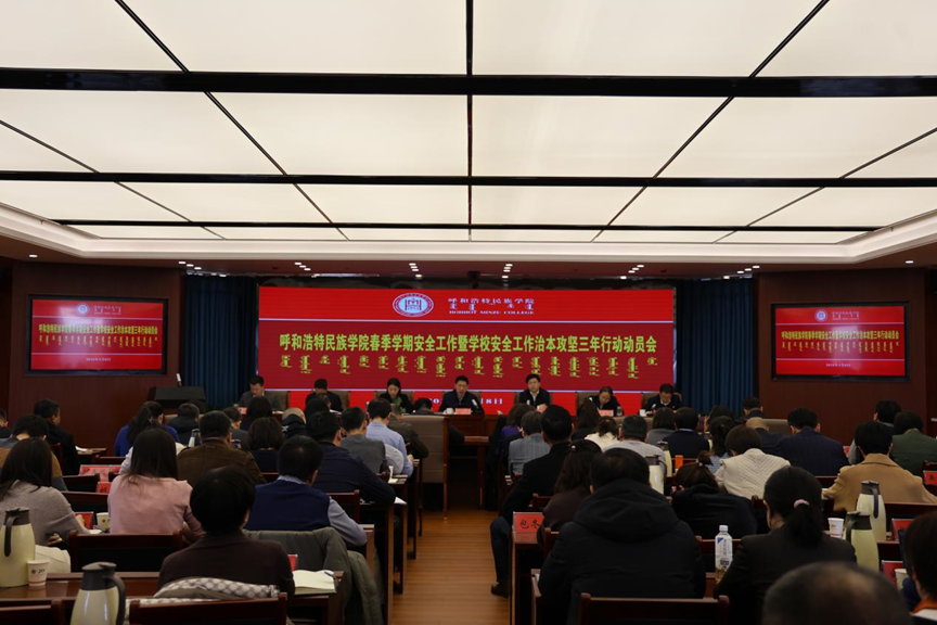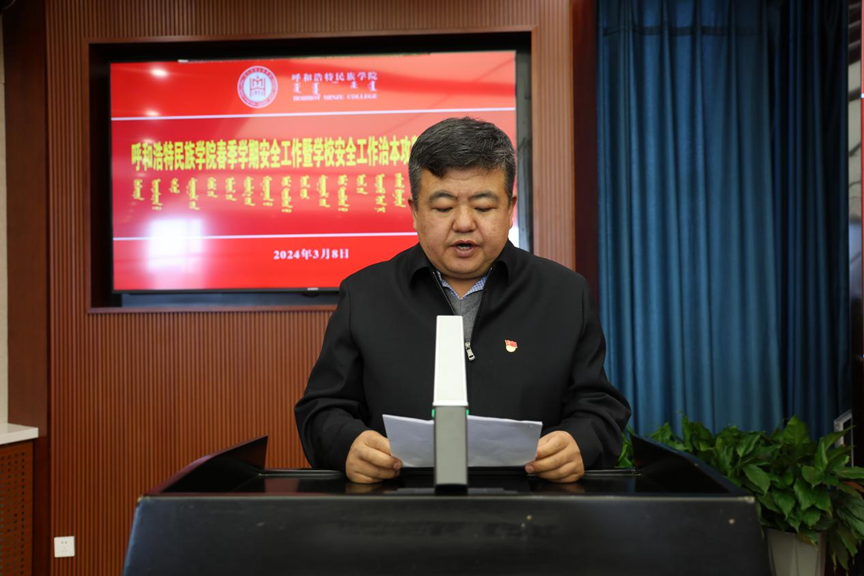 为进一步加强学校安全管理,维护校园安全稳定,结合自治区教育厅春季开学安全工作暨自治区教育系统安全生产治本攻坚三年行动动员部署会议精神,3月8日上午10时,在综合楼12楼会议室召开了best365官网中文版登录春季学期安全工作暨安全工作治本攻坚三年行动动员会。校党委书记刘九万,副书记格根哈斯,纪委书记、监察专员王冬梅,党委委员、副校长高喜天、刘瑞鸿、额尔敦布和出席会议。全校副处级以上干部参加会议。会议由党委副书记、校长韩伟新主持。