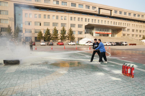 其次,模拟火灾现场,进行应急疏散演练。演练后,周老师现场展示灭火器、消防水枪,并进行实际操作演示,让同学们清楚了解如何正确选择和使用消防器材。随后,同学们积极参与实战演练,进一步熟悉消防器材的使用技巧。