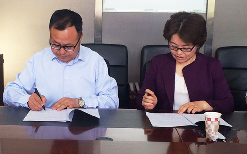 随后,胡春梅副书记与阿斯根总编辑签订了共同建立实习实训教学基地的协议,并实地参观了新华网蒙古语网站的办公场所。