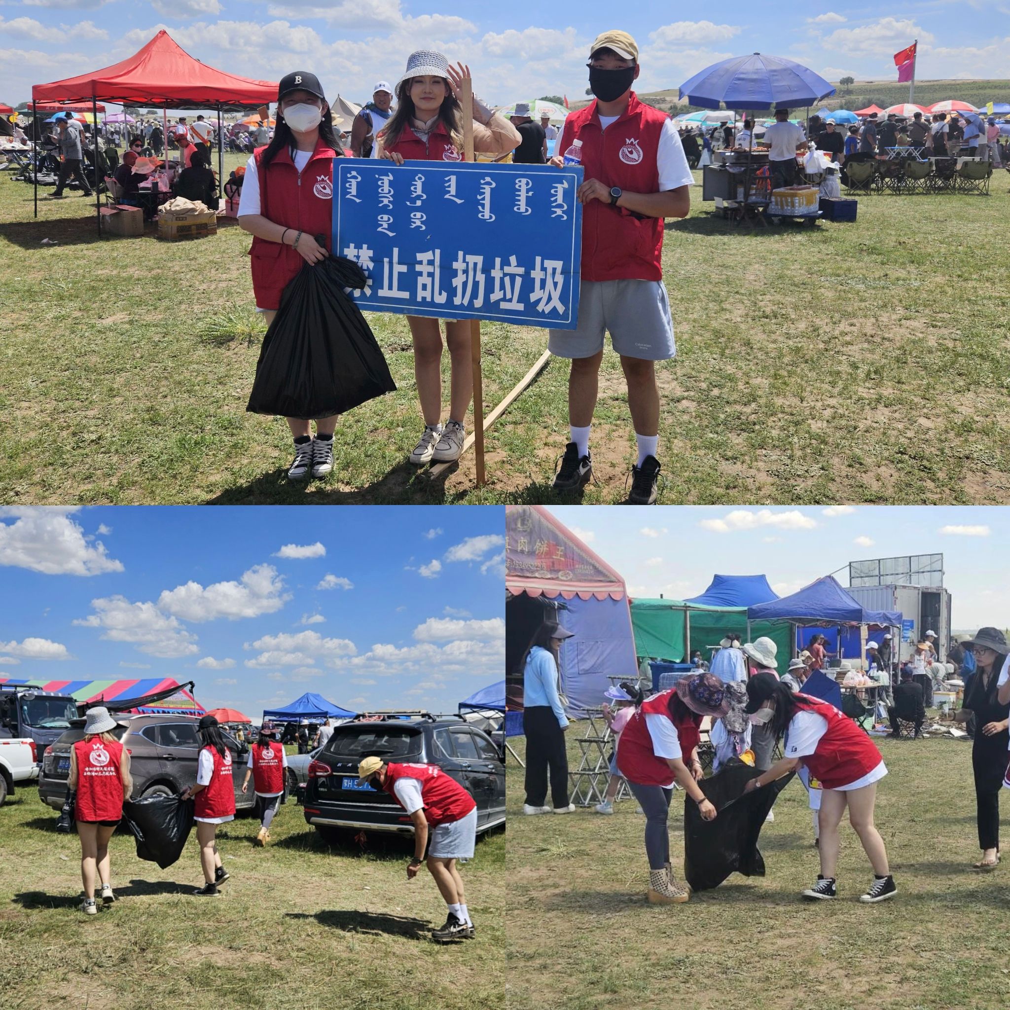 活动现场,志愿者们积极向农牧民发放环保布袋,倡导减少一次性塑料袋的使用,以实际行动推动绿色生活方式的普及,同时,志愿者们还认真清理那达慕现场的垃圾,用自己的双手让活动现场恢复整洁与美丽。