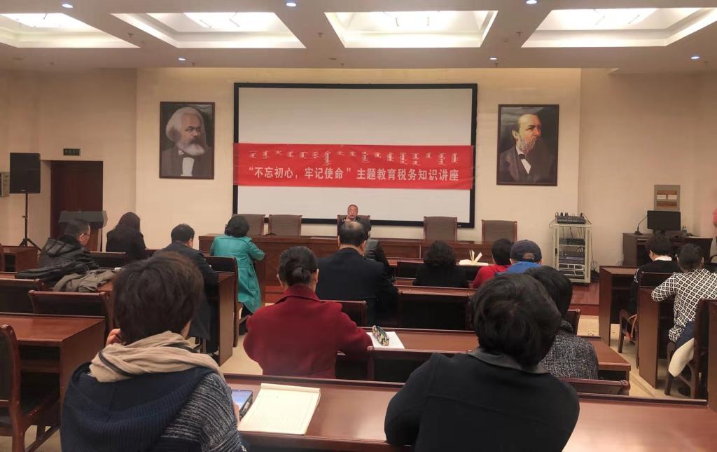 2019年10月29日上午,财务处特邀呼和浩特市税务局第二税务分局邢轶宾老师,在图书馆一楼报告厅为全院教职工开展个人所得税专题讲座。