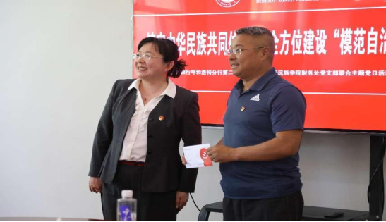 为深入学习贯彻党的二十大精神,全面贯彻习近平总书记关于加强和改进民族工作的重要思想,有形有感有效铸牢中华民族共同体意识,扎实推动主题教育走深走实,6月14日上午,财务党支部邀请浙商银行呼和浩特分行第二党支部联合开展“铸牢中华民族共同体意识 全方位建设模范自治区”主题党日活动。浙商银行呼和浩特分行副行长王喆参加活动。best365党委副书记、校长韩伟新、副校长纳丽娜应邀出席活动。活动由best365财务处党支部书记、财务处处长王小梅主持。