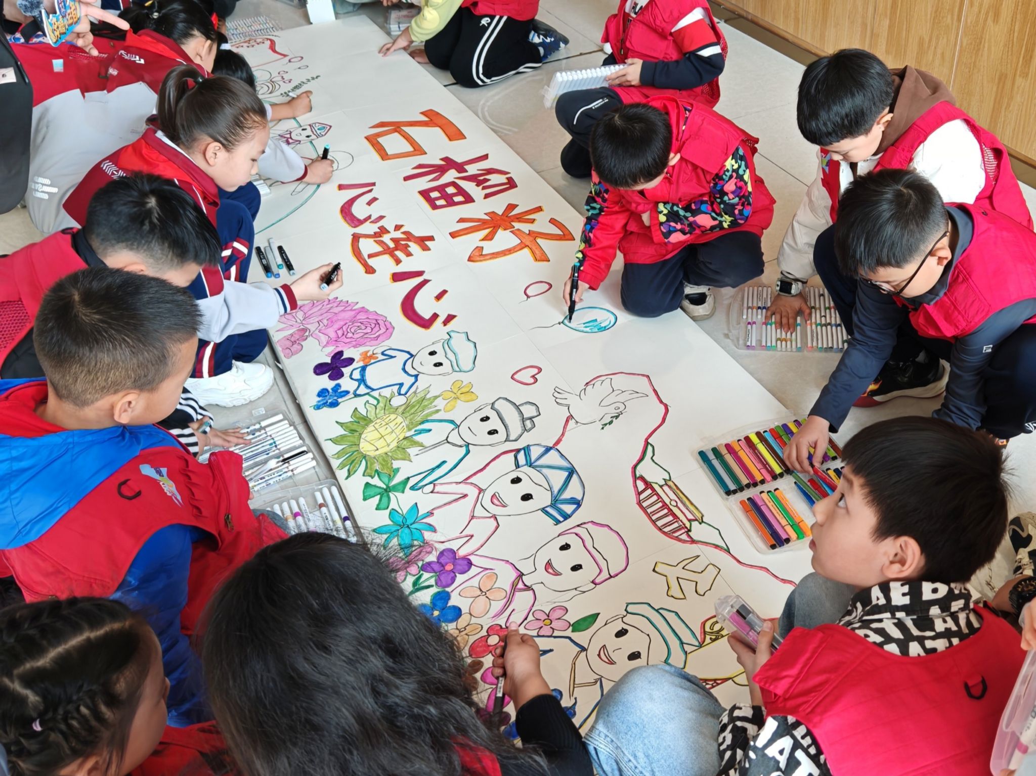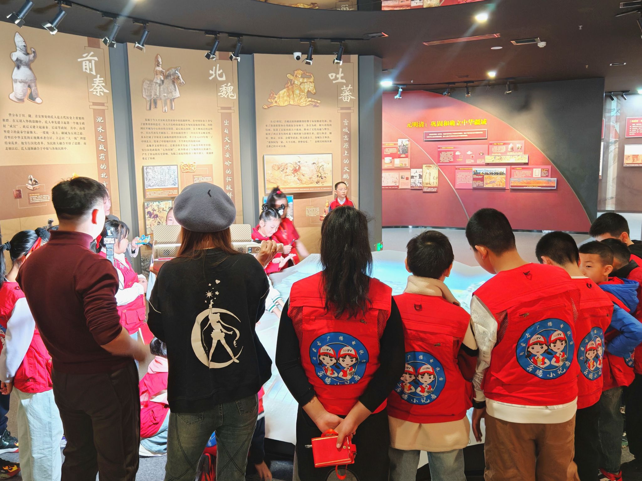 在活动中,“北疆小红马”大学生讲解员陈宣锦,以大手拉小手的方式,带领于思涵、王赟泽、王宸菲、鲁旭瑶、肖清云、郝思语等6位北垣小学(公主府校区)的红领巾讲解员一道开展讲解。讲解员们以中华文明的起源为起点,结合馆内丰富的图文、实物以及多媒体互动等教育资源,引导小记者们探索“我们从哪里来?”“我们是谁?”“我们要到哪里去?”的答案,深入理解中华民族共同体的含义。参观结束后,美术与设计学院的大学生与小记者团成员共同创作了以“石榴籽 心连心”为主题的画卷。本次活动通过“听、看、绘”相结合的方式,使青少年在行走的课堂中埋下爱我中华的种子,树立正确的国家观、历史观、民族观、文化观、宗教观,巩固民族团结的思想根基。