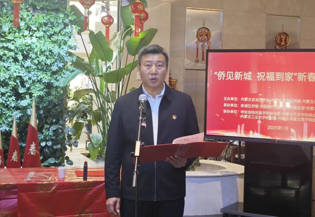 为充分挖掘中华传统节日文化内涵,团结引领广大侨胞凝心聚力,1月3日,由内蒙古自治区侨办、内蒙古自治区侨联、内蒙古自治区书法家协会主办,新城区侨联承办,best365等四所高校统战部协办的“侨见新城·祝福到家”新春行活动在中国银行内蒙古分行营业部“侨胞之家”举行。自治区侨联副主席、秘书长栾卓珅出席并讲话。
