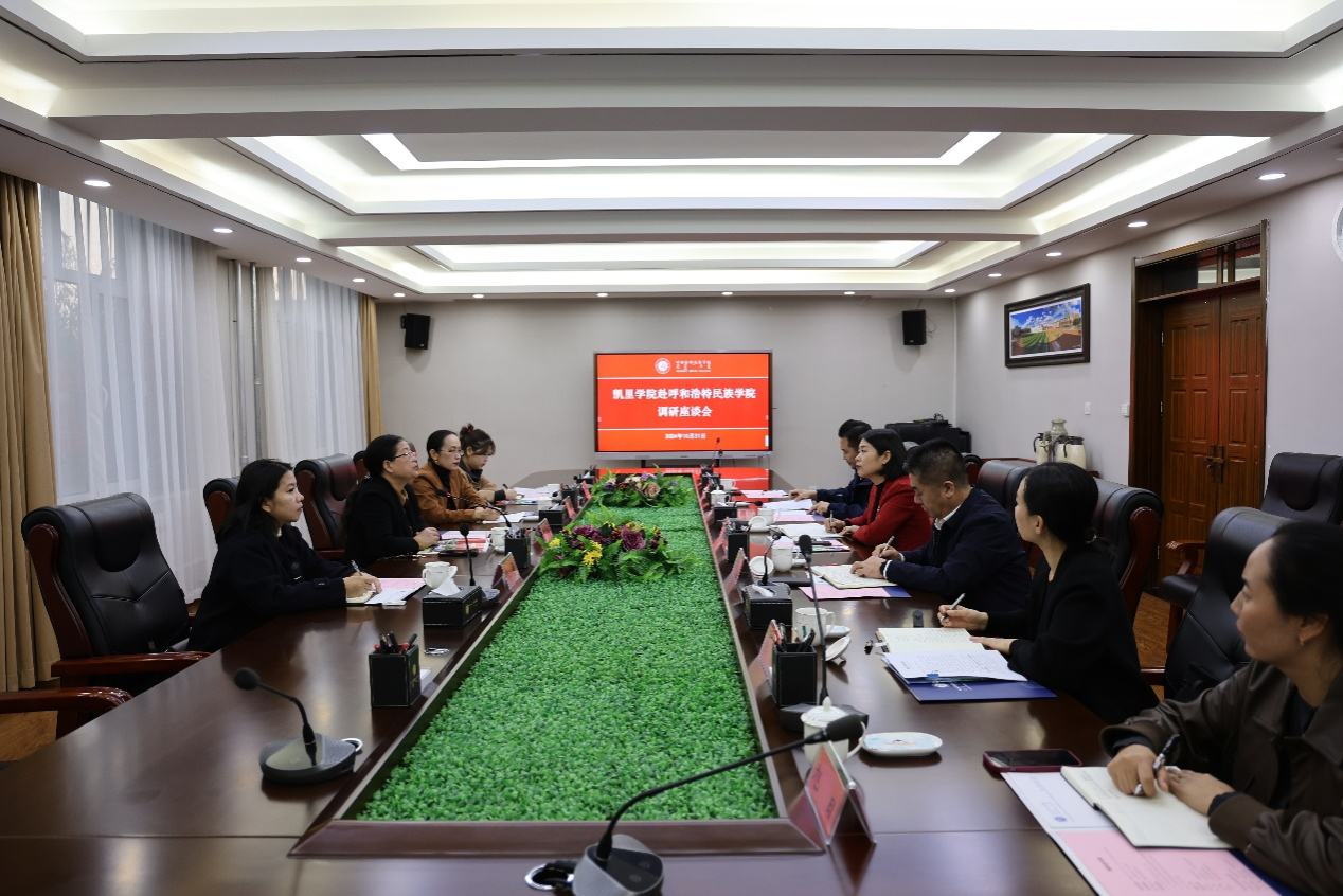 校党委副书记格根哈斯主持座谈并致欢迎辞。她围绕学校把民族团结进步教育作为学校发展最鲜亮的底色,落实立德树人根本任务,结合党建工作、宣传思想文化工作、特色专业和科研基地建设等经验做法作了交流。
