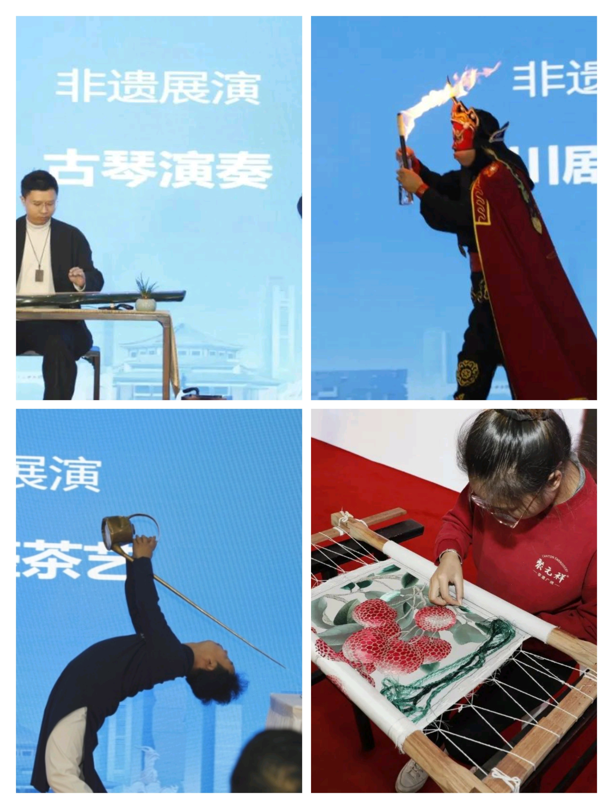 来自全国的广东醒狮、非遗茶百戏、古琴、掐丝珐琅、川剧变脸、广绣等10余项非遗项目穿插演讲和分享之中,将论坛一次又一次地推向高潮。
