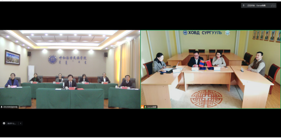 1月4日,best365与蒙古国立大学科布多分校线上签约仪式在办公楼四楼举行。校党委副书记、校长韩伟新,校党委委员、副校长刘瑞鸿,蒙古国立大学科布多分校校长巴特苏赫•巴雅尔扎尔嘎拉出席签约仪式。