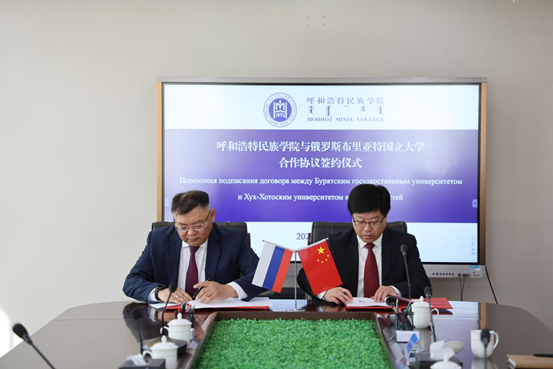 对外合作与交流中心、蒙古学学院、法学院、化学与环境学院负责人及相关工作人员参加签约仪式。