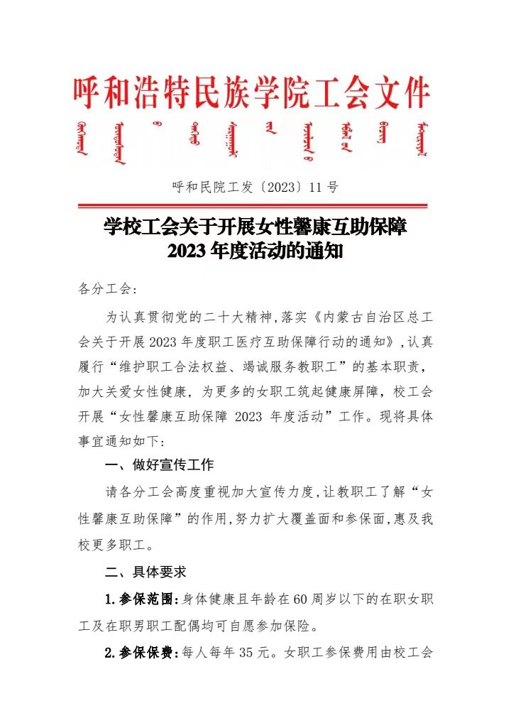 学校工会关于开展女性馨康互助保障2023年度活动的通知