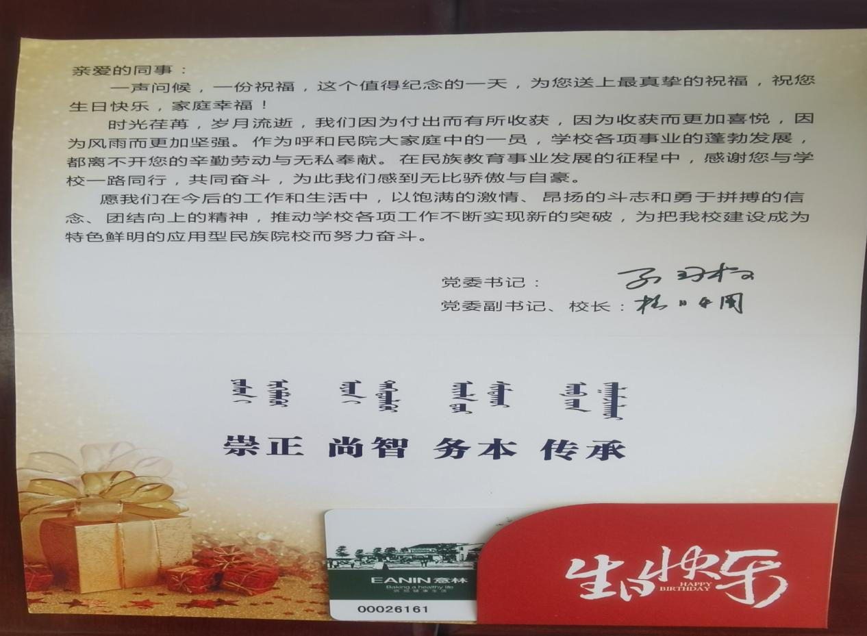 三是,为教职工发放节日慰问品和生日卡。