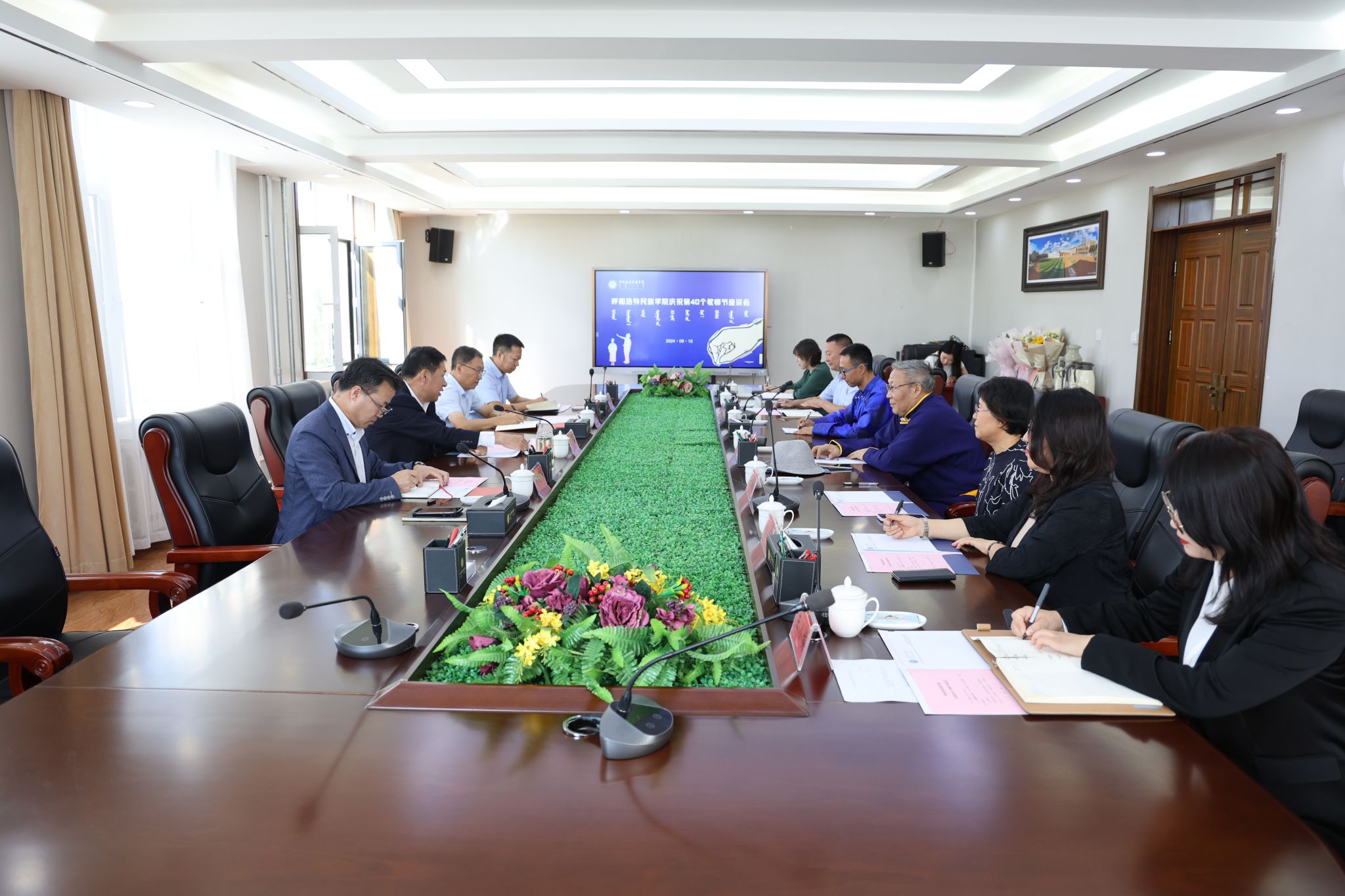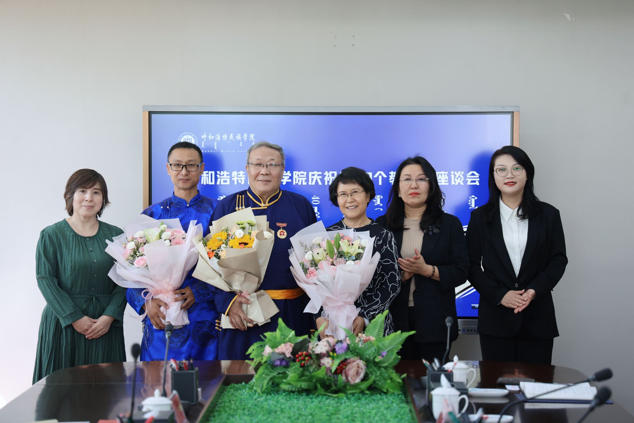 9月10日,学校召开了庆祝第40个教师节教师代表座谈会。校党委书记刘九万,党委委员、副校长刘瑞鸿,党委委员、副校长额尔敦布和,党委委员、副校长双虎等校领导与老中青三代教师代表吴宝山、杜勍妹、何斯日古楞进行座谈交流。