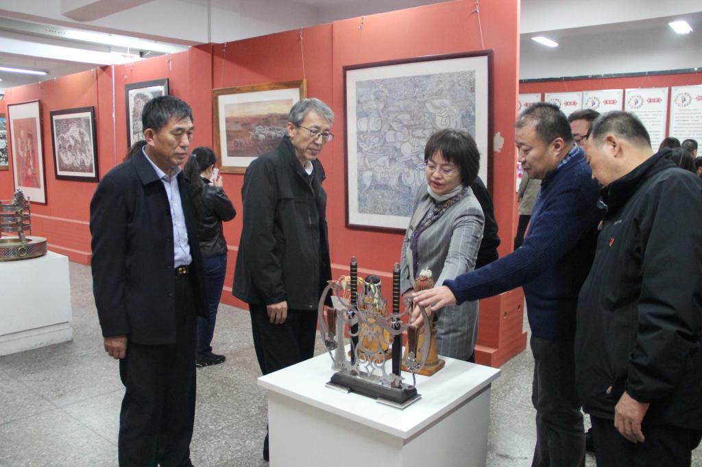 傲木格副主席一行在胡春梅副书记的陪同下一起观看了“铸牢中华民族共同体意识”图片展版,美术学院民族团结进步成果展,到学校体育学院实地体验了民族体育传统项目布鲁、射箭活动。
