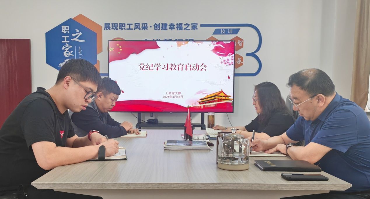 4月18日下午,工会党支部召开党纪学习教育启动会议,工会全体党员参加,支部书记杨福梅同志主持会议。