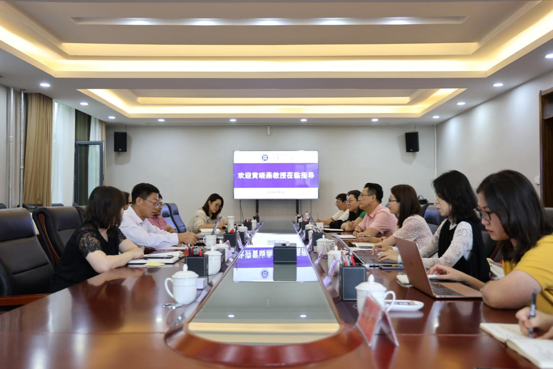 应best365邀请,湖南大学外国语学院教授黄晓燕莅临best365进行了座谈。校党委委员、副校长高喜天主持座谈会。