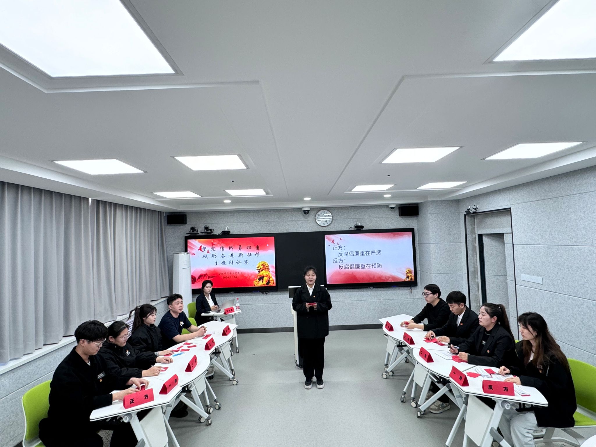 为深入学习贯彻习近平总书记关于加强党的纪律教育的重要论述,推动党纪学习教育入脑入心走深走实,推动廉洁文化建设实起来强起来,11月18日下午,管理学院学生党支部围绕“反腐倡廉重在严惩还是重在预防”辩题展开辩论。