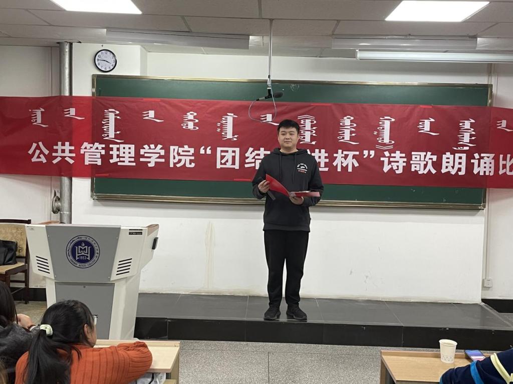 本次比赛共有5个专业的39名选手参加。各参赛选手通过热情洋溢的朗诵,展现了当代大学生的精神风貌。经过几轮评比,2021级行政管理专升本班白岩松、2020级文秘1班前白同学分别获得汉语组、蒙语组一等奖。