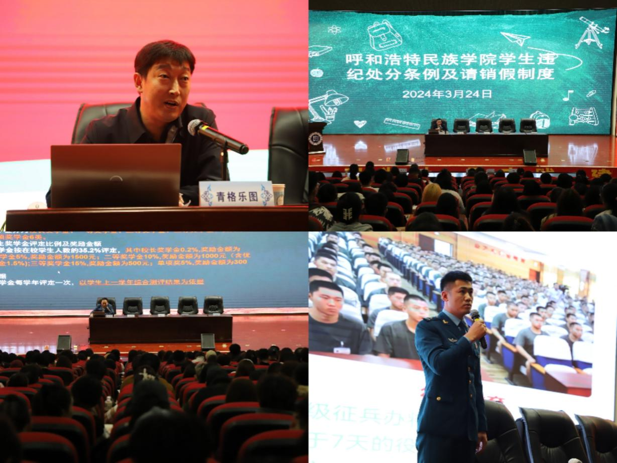 为了推动新学期各项工作的顺利进行,并帮助学生们在新的学期里明确人生方向、端正学习态度、遵守校规校纪、培养良好的行为习惯,学院于3月24日在北图书馆二楼召开了2024年春季学期学生工作会议,会议由团总支书记宝连老师主持,党总支书记格日乐、院长哈斯同力嘎、党总支副书记青格乐图,学工办主任前达蒙、各班班主任辅导员以及全院700多名学生参加。