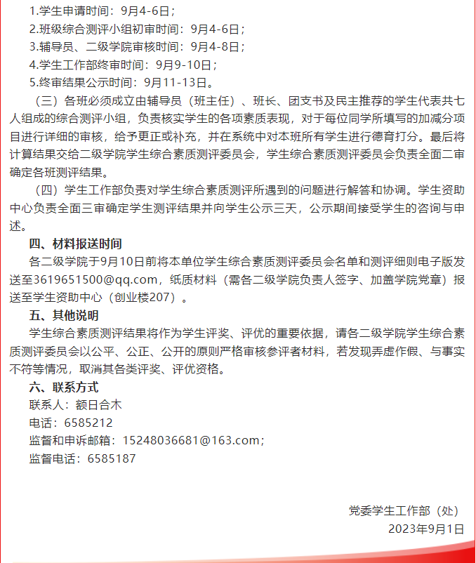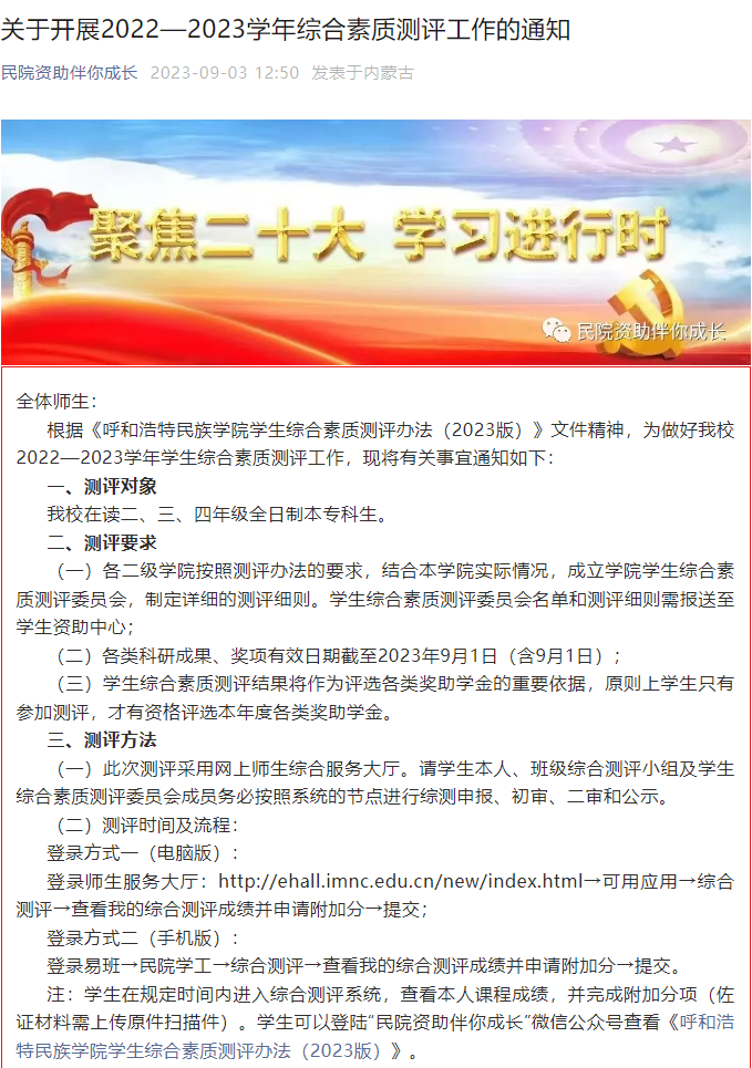 转载学校党委学生工作部(处)《关于开展2022—2023学年综合素质测评工作的通知》