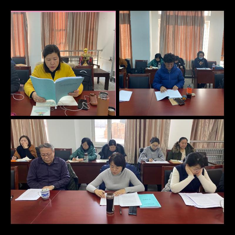 26日下午全体教职工在学院会议室观看内蒙古党校吴清慧教授讲授的