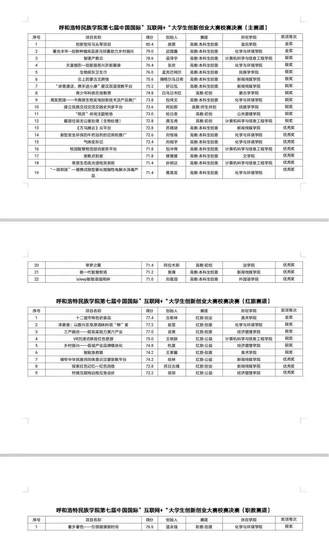 第七届“互联网+”大学生创新创业大赛校级决赛于2021年6月24日在图书馆二楼举行。我院共收集到参赛策划书56份,经过初选21个团队进入学院初赛,阿如娜同学负责的民族地区“网络辅助教学系统”、楠登同学负责的“牧民之友”畜牧养殖服务平台、哈日贵同学负责的“照庆”休闲主题牧场进入校级初赛和复赛,最终哈日贵同学负责的“玛拉沁”团队的“照庆”休闲牧场建设项目进入校级决赛。经过5分钟PPT项目情况介绍,1分钟视频展示和5分钟回答评委提问,该项目在众多参赛作品中脱颖而出,荣获高校主赛道铜奖。该项目由白跟小老师和额尔敦格日乐老师指导,团队由2020级文秘班的太平、格根其尔、萨其拉、韩丹丹等同学组成。