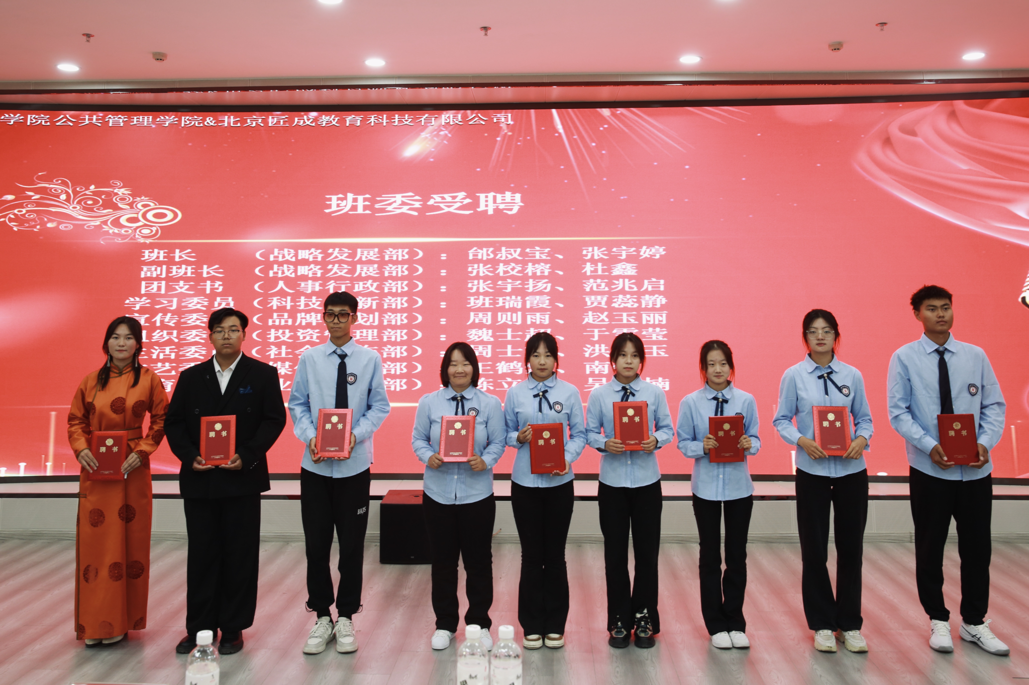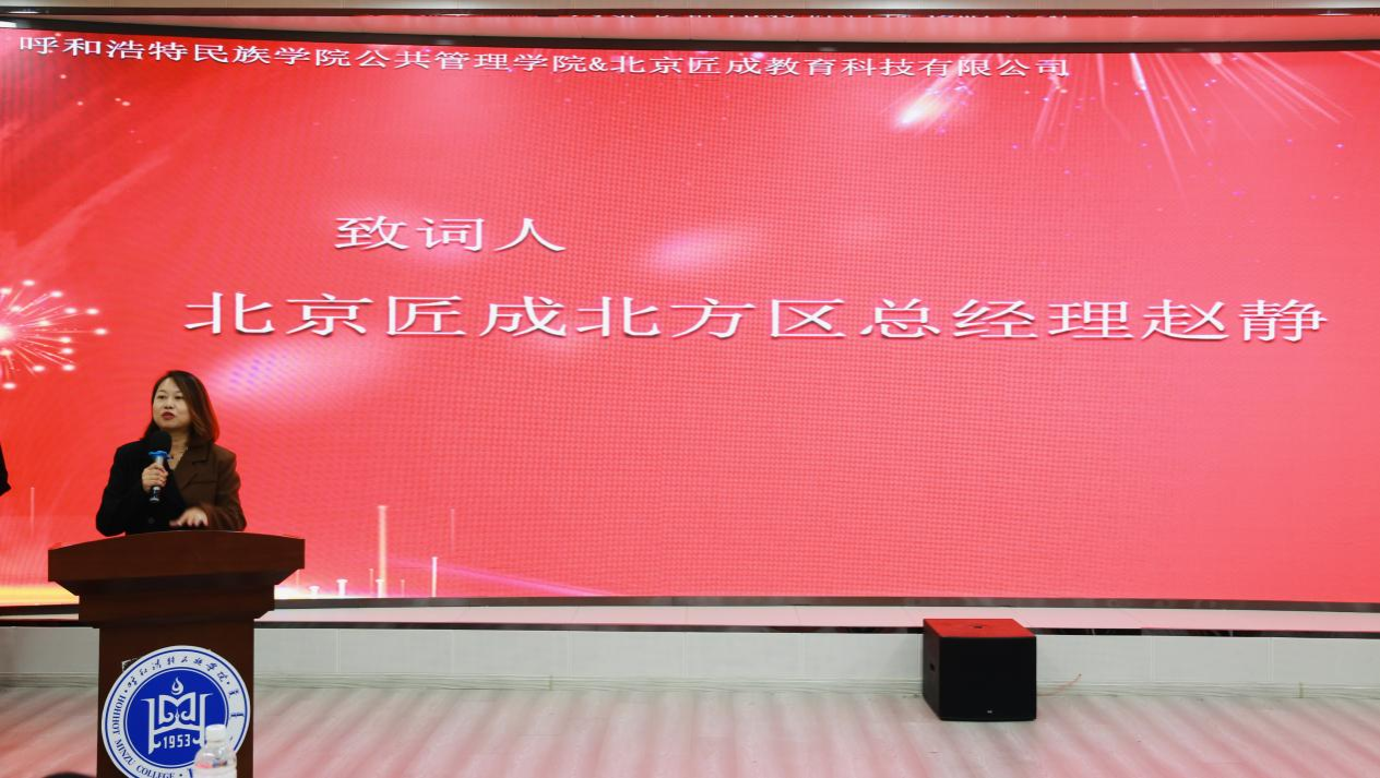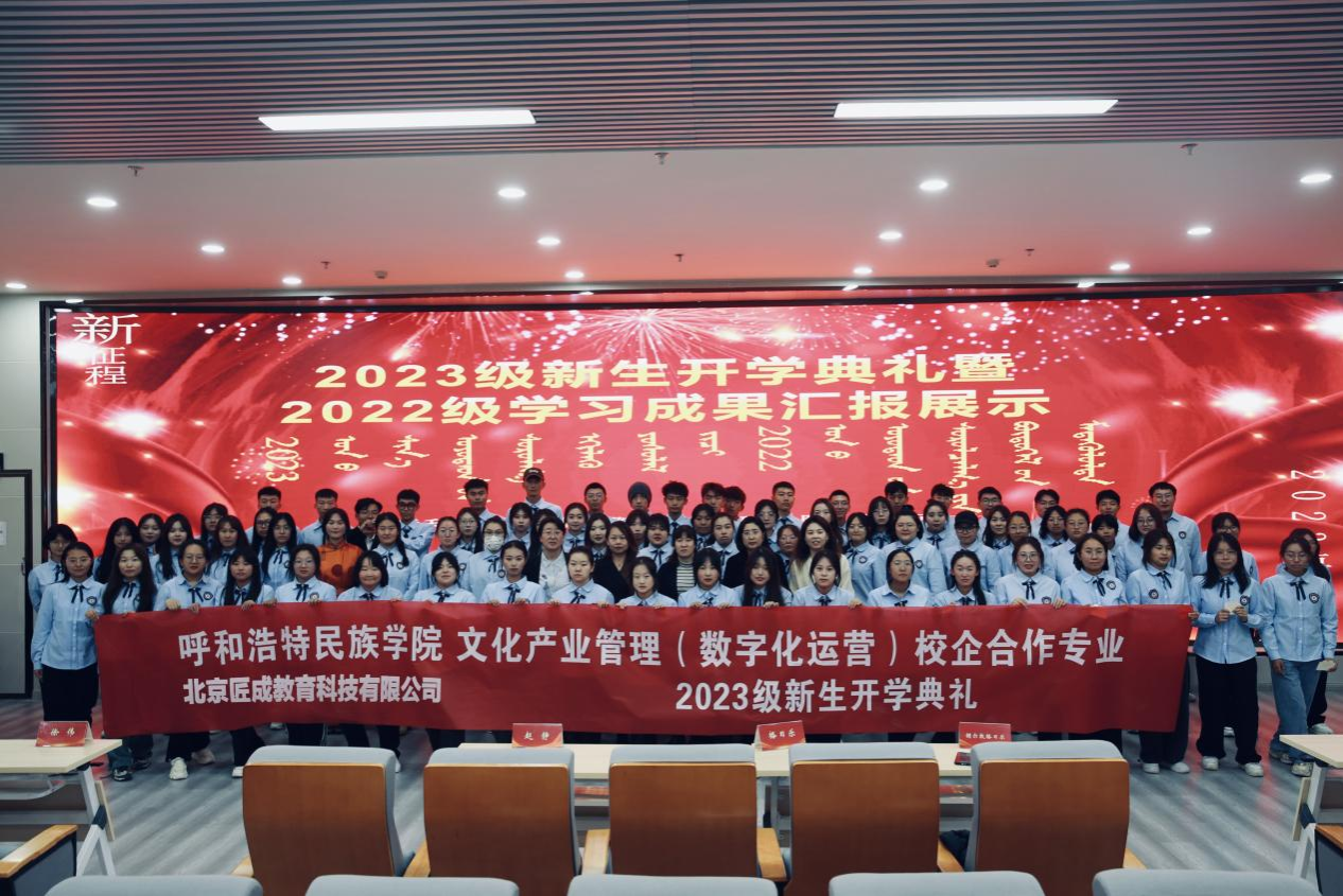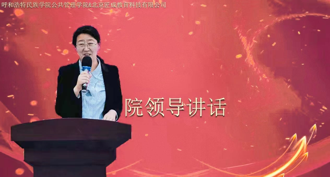 公共管理学院党总支书记格日乐、公共管理学院副院长额尔敦格日乐、公共管理学院文化产业管理教研室主任马冬梅以及北京匠成教育科技有限公司北方区总经理赵静、北方区总经理助理徐伟、北方区班主任刘媛,文化产业管理(数字化运营)四个班同学参加了开学典礼。