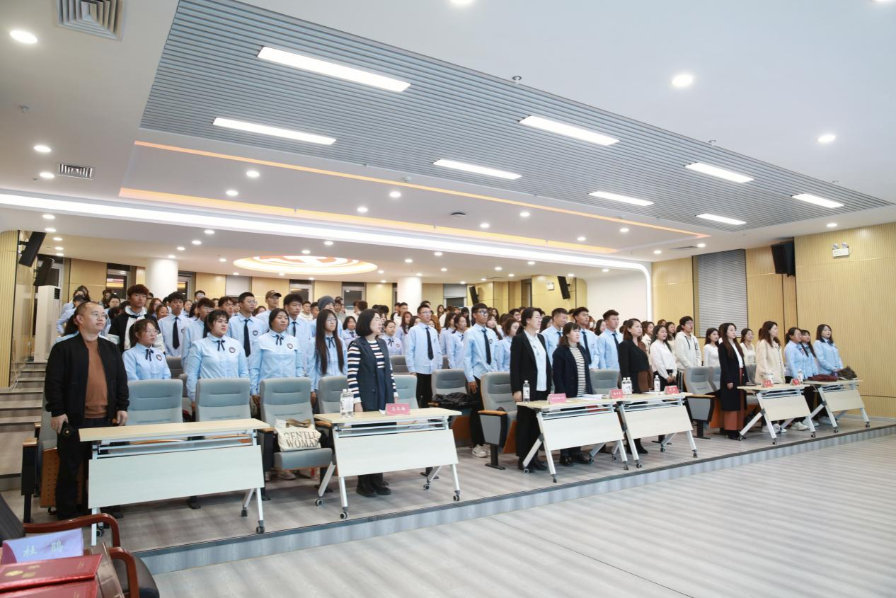典礼仪式接近尾声之际,学院领导和企业领导共同为2023级新生班干举行了班委受聘仪式,希望新生能够在老师与学长学姐的带领下,把握机会,在校认真学习专业知识,在企业认真参加轮岗实习和教育实习,通过锻炼不断提升自我,将来成为学校的优秀学生、企业的优秀员工。