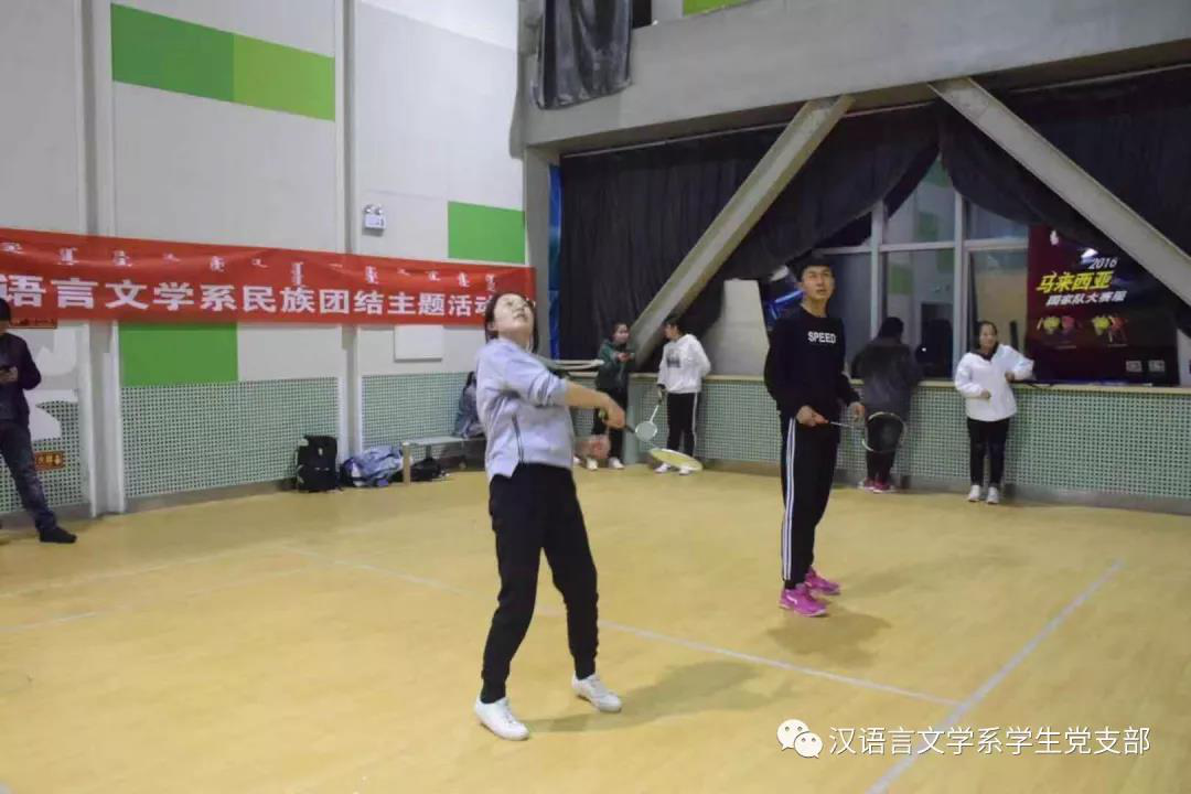 为丰富和活跃学生文体生活,促进各民族学生交流交往交融,10月20日,汉语言文学系学生党支部举办以民族团结为主题的羽毛球比赛,来自我系的学生党员、发展对象和入党积极分子共计50余人参加了这次比赛。