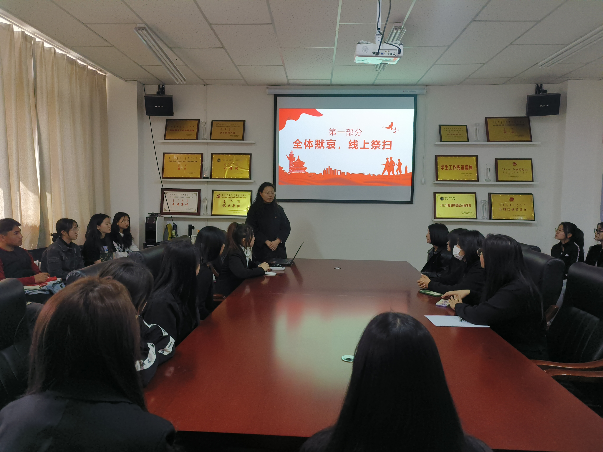 此次线上祭祀活动在庄严而肃穆的氛围中拉开帷幕。随着主持人宣布活动开始,学生们肃立默哀表达对先人的怀念与敬意。在默哀结束后,来自侗族学生代表王含鲜为大家详细的介绍了侗族人民的方言和文化习俗,特别介绍了龙大道、粟裕大将等侗族的革命英雄,并表达了对英烈们的缅怀之情。最后,学生们登录中华英烈网,为家乡英烈祭扫。