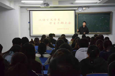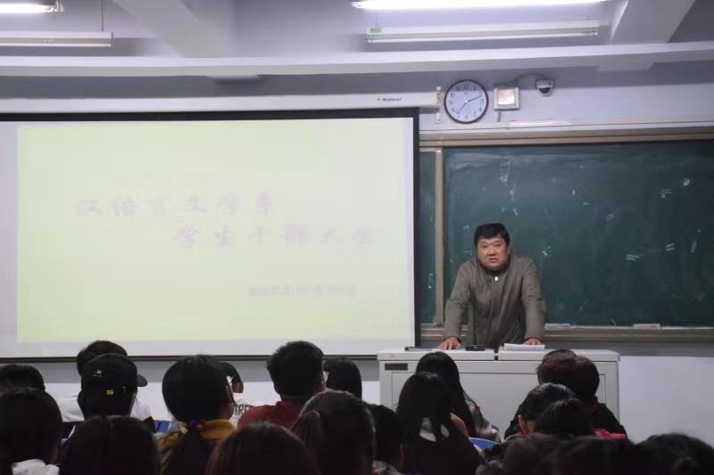 为了进一步加强学生的教育管理工作,营造积极向上的学习氛围,共同创建良好的生活坏境,汉语言文学系于10月24日在都林楼306教室召开全系学生干部大会。会议由专职辅导员华国庆老师主持,党总支书记赛音图出席本次大会。