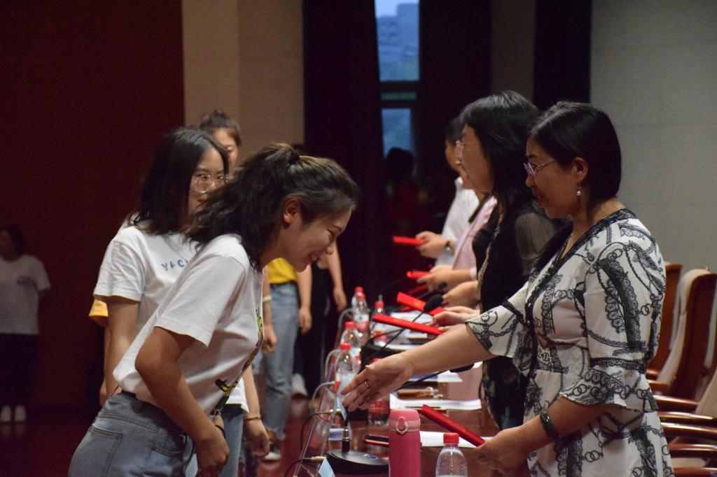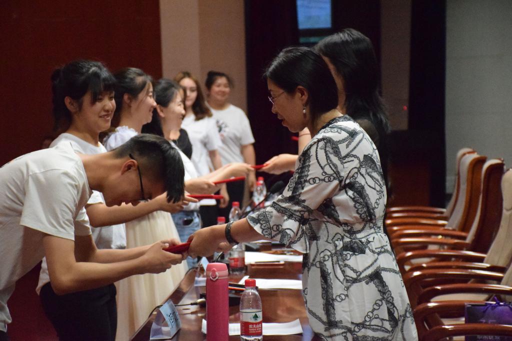 随后大会对先进个人、先进集体进行了表彰。本次表彰包括121名获得自治区级、校级、院级“三好学生”、“优秀毕业生”、“优秀学生干部”、“优秀共产党员”荣誉称号的先进学生,获得校级、院级“优秀班集体”称号的4个班级,18名顺利通过英语四六级考试的学生,51名书画作品大赛获奖学生,24名2019年田径运动会获奖学生,16个优秀宿舍,5名获得院级“优秀共产党员”、“优秀班主任”、“优秀教师”称号的先进教师。表彰结束后,优秀学生干部代表吴青海、优秀党员代表腾小凤、优秀班集体代表贾非以及优秀毕业生代表赵春伟依次进行了发言。发言结束后,2016级对外汉语1、2班学生向学院馈赠书画作品,并表达了对文学的衷心祝愿。接着,由毕业班班主任白志坚老师为2019届毕业生送出毕业祝福。