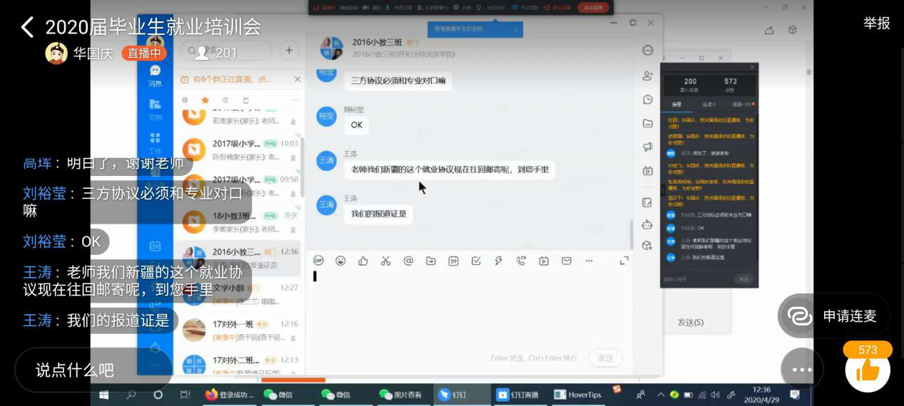为进一步做好毕业生就业工作,确保2020届毕业生顺利就业、充分就业、高质量就业,结合学院实际情况,文学院于4月29日中午12:00,通过钉钉平台召开了2020届毕业生就业指导大会。2020届全体毕业生参会议,会议由文学院3位辅导员主持。