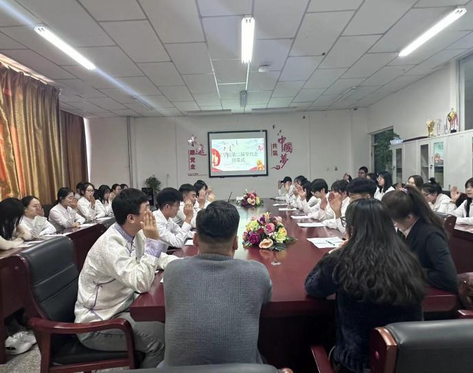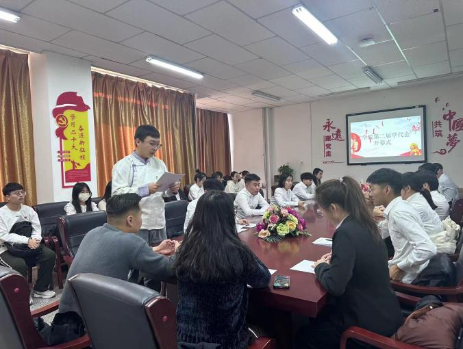 2023年12月12日,文学院第二届学生代表大会在尚智楼112会议室顺利召开。团总支书记刘晓、辅导员宝力尔、校学生会主席团成员及全体学生代表参加,会议由学生代表小峰主持。