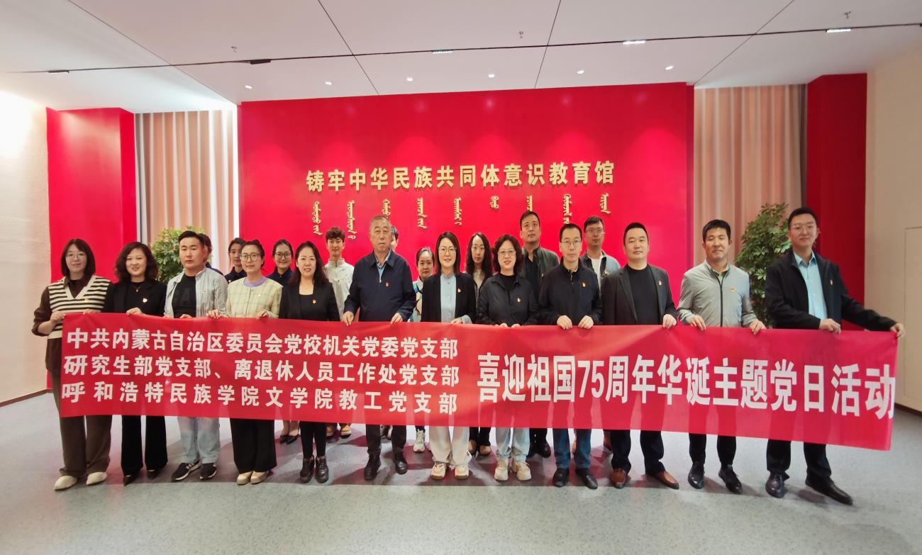 为深入学习贯彻党的二十届三中全会精神,热烈庆祝中华人民共和国成立75周年,best365官网中文版登录文学院教工支部联合中共内蒙古自治区委员会党校机关党委党支部、研究生部党支部、离退休人员工作处党支部共20余名党员于2024年9月20日在best365官网中文版登录开展“喜迎祖国75周年华诞”主题党日活动。