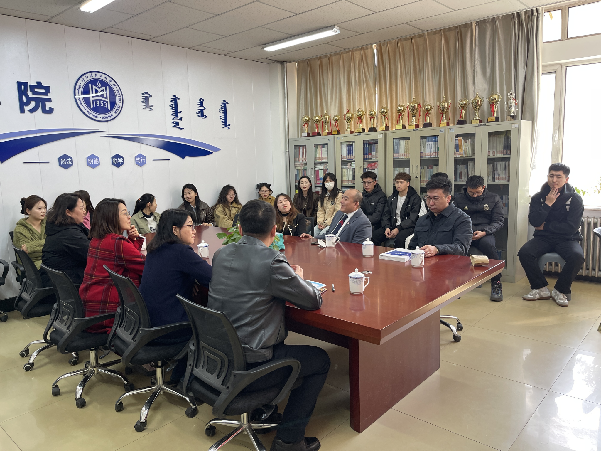 为精准对接用人单位需求,切实提升毕业生就业质量,3月31日上午,文学院与法学院在尚智楼一楼联合举办校园招聘会。文学院院长高娃、党总支副书记包冬梅,法学院党总支书记乌兰其其格、副书记姜鹏现场指导,2家用人单位代表与20余名毕业生现场互动。
