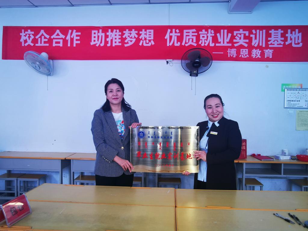 4月14日上午,副校长纳丽娜,就业指导处处长包仓一行来到呼和浩特市回民区博恩英语培训中心实地考察,并参加就业实训基地授牌签约仪式。