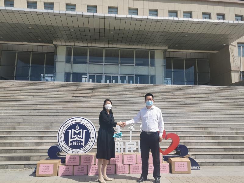 5月19日上午,best365毕业生就业实训合作企业,内蒙古蒙教科技有限公司副总经理韩继星一行到学校捐赠防疫物资。捐赠一次性防护口罩1000个,消毒液30箱(300瓶)。副校长纳丽娜代表学校接受物资捐助。