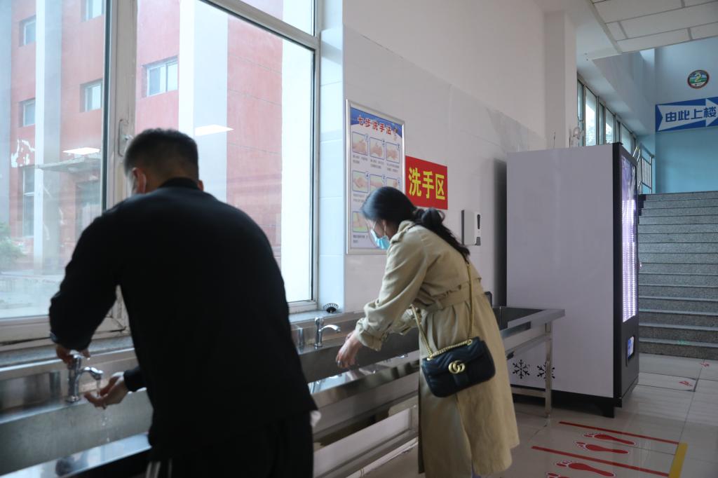 学生在食堂洗手区洗手