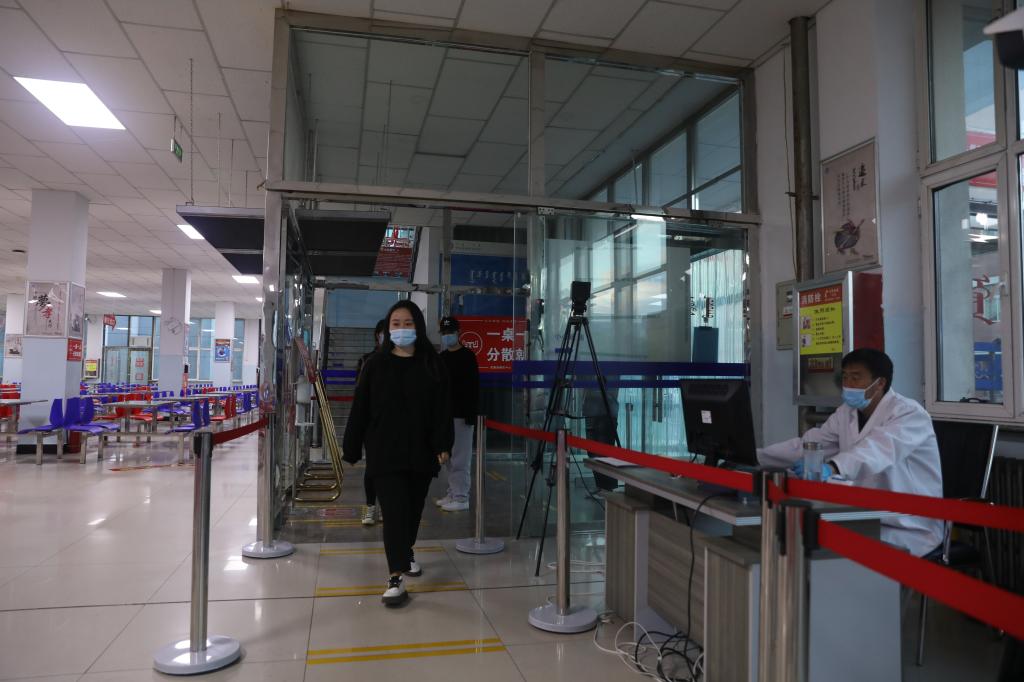 报到当天,学校西门为唯一入口,保卫处协同回民区大队四中队的交警同志为同学们提供交通疏导。同学们来到西门自觉间隔一米排队进入西门监测点,通过人脸识别仪器和身份证识别系统再次进行身份核验、体温监测进入校园。学校为每位返校学生准备了一次性医用口罩包,表达了对学生的深深关怀之情。