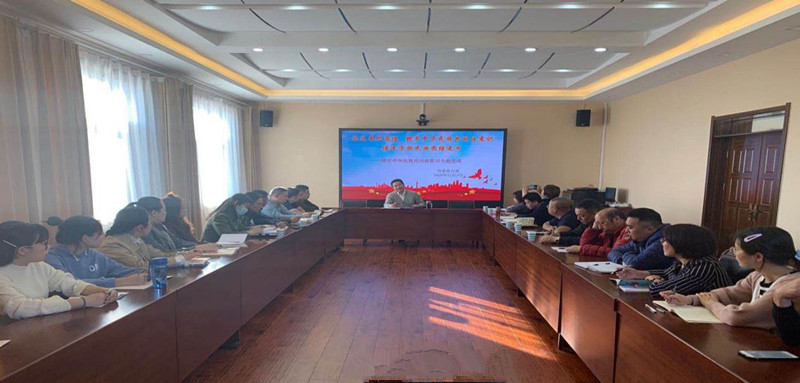 11月3日下午,党委委员、副校长贺希格吉雅在办公楼4楼会议室,以“立足本职岗位,铸牢中华民族共同体意识,促进学校民族团结进步”为题,为分管部门和联系学院党员师生代表讲授了铸牢中华民族共同体意识专题党课。