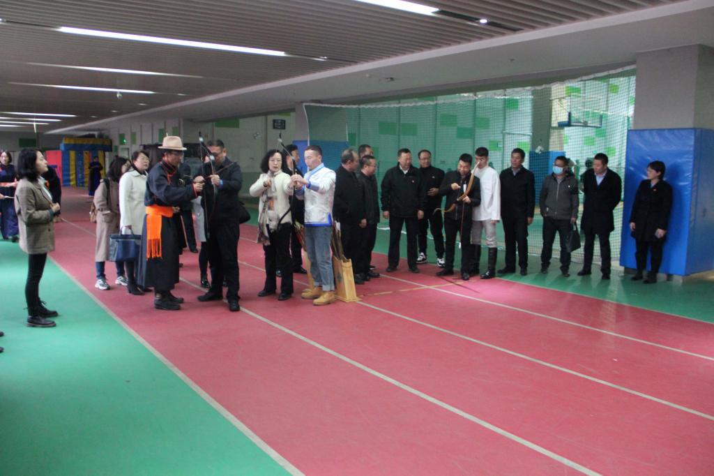 傲木格副主席一行在胡春梅副书记的陪同下一起观看了“铸牢中华民族共同体意识”图片展版,美术学院民族团结进步成果展,到学校体育学院实地体验了民族体育传统项目布鲁、射箭活动。
