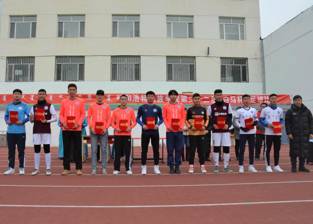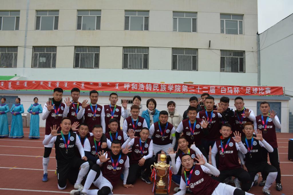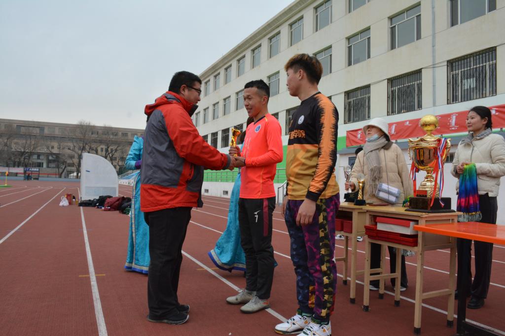 本届“白马杯”校园足球赛自10月29日开赛后,进行了20余场赛事的激烈角逐,最终公共管理学院和体育学院突出重围,进入总决赛。队员们面对凛冽寒风,仍斗志昂扬,为了集体荣誉,拼尽全力、毫不放松,娴熟的动作及完美的技巧赢得现场观众的阵阵掌声与欢呼。经过110分钟的激战,公共管理学院与体育学院以2:2的平分进入点球大战,最终公共管理学院以6:5的成绩夺得了本届足球赛冠军,体育学院获得亚军,经济管理学院获得季军。随后,在足球场进行了颁奖仪式。校党委副书记胡春梅、团委书记苏伦高娃、体育学院党总支书记白东升、体育学院院长乌日根牧仁、体育学院副院长白图日根、体育学院运动学教研室南丁宝力格分别颁发了一等奖、二等奖、三等奖、体育道德风尚奖、优秀裁判员、最佳射手奖等奖项。
