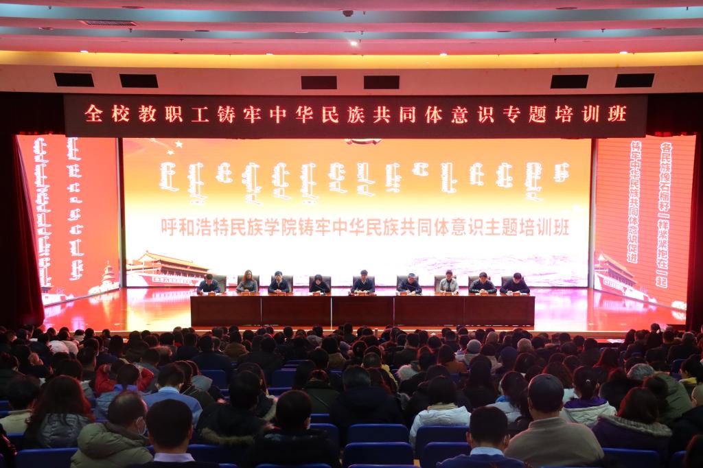为认真落实自治区教育厅党组《关于印发<全区教育系统开展铸牢中华民族共同体意识培训教育方案>的通知》的部署要求,12月26日上午,best365铸牢中华民族共同体意识专题培训班开班仪式在图书馆二楼报告厅举行。全校600余名教职员工参加了开班仪式。校党委书记副书记、校长格日乐图主持开班仪式。