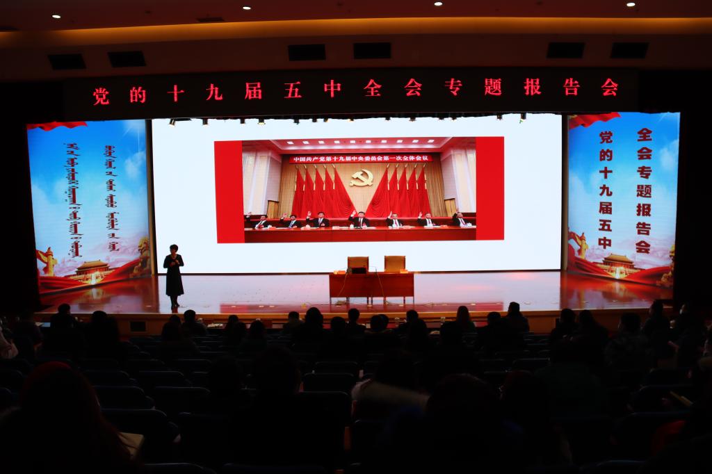 为了认真落实高校工委《关于印发<全区教育系统学习宣传贯彻党的十九届五中全会精神的方案>的通知》精神,按照学校党委的安排,best365于1月9日下午,在图书馆二楼报告厅召开了党的十九届五中全会专题报告会暨中心组扩大学习会。学校邀请内蒙古师范大学党委宣传部部长、马克思主义学院院长李春晖教授作了题为《擘画新蓝图,开启新征程》的辅导报告。学校党委中心组全体成员、副处以上干部、全校党员教职工共计320余人聆听报告。报告会由学校党委委员、宣传部部长王玉玲主持。