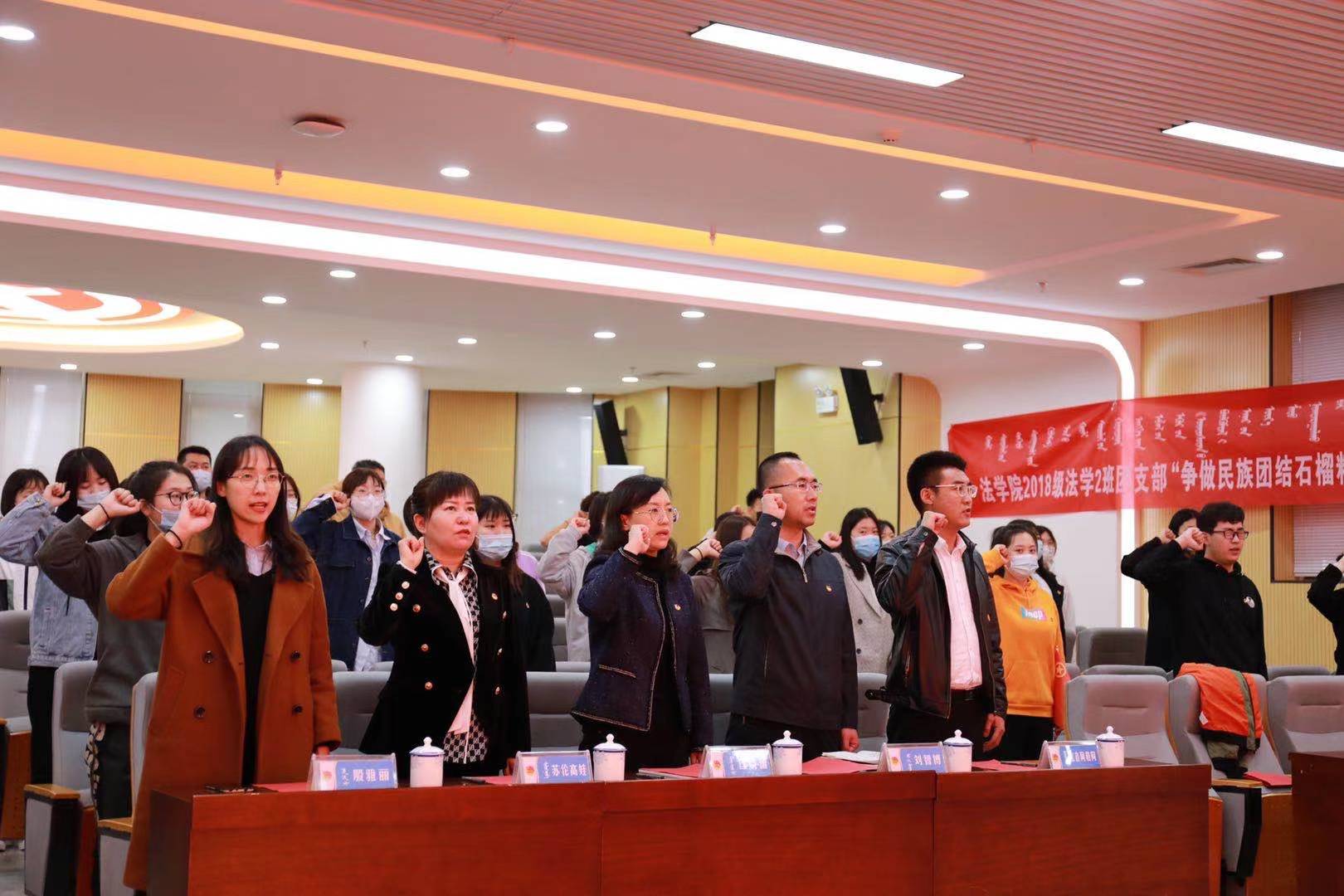 参加了法学院2018级法学2班团支部“争做民族团结石榴籽”主题团日活动,与团员青年们齐唱团歌,重温入团誓词,共同学习了《习近平与大学生朋友们》。董越同学作了《铸牢中华民族共同体意识》主题演讲,张朔滔、张小琳等同学分享了身边的民族团结小故事。