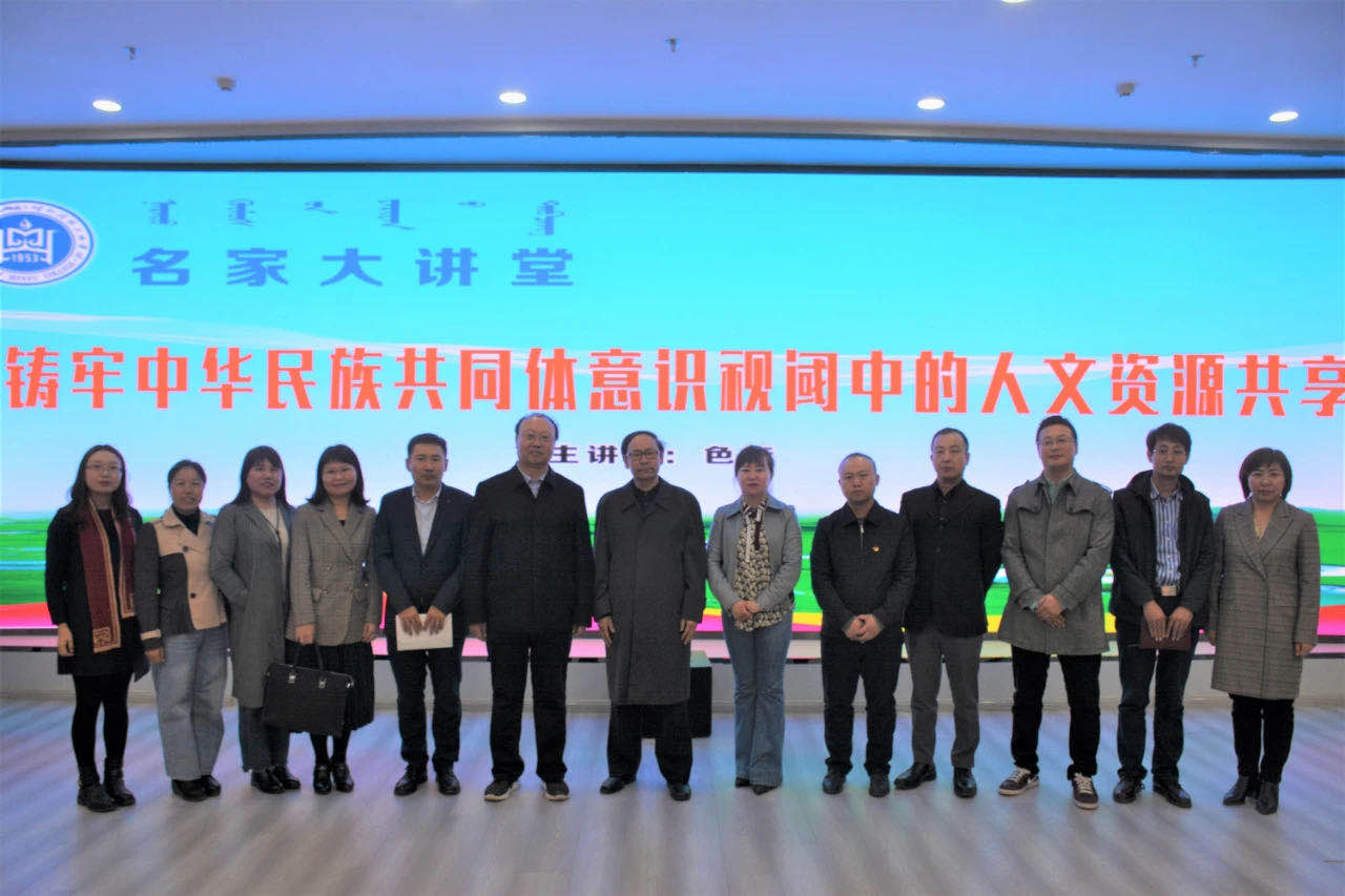色音教授以“铸牢中华民族共同体意识视阈中的人文资源共享”为题,围绕中华民族共同体,非物质文化遗产等关键词,全面系统地阐释了铸牢中华民族共同体意识的历史脉络、核心要义以及如何在新时代保护和共享内蒙古非物质文化遗产,促进各民族交往交流交融。色音教授讲授方式形象生动、案例详实,使广大师生受益匪浅,获益良多。