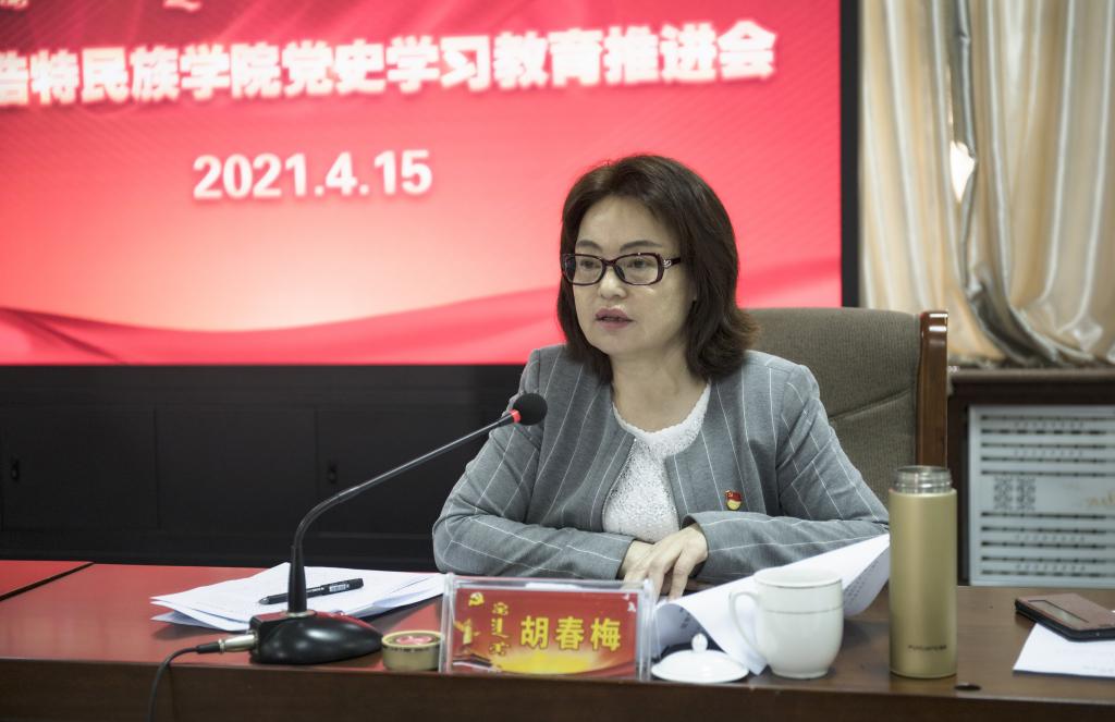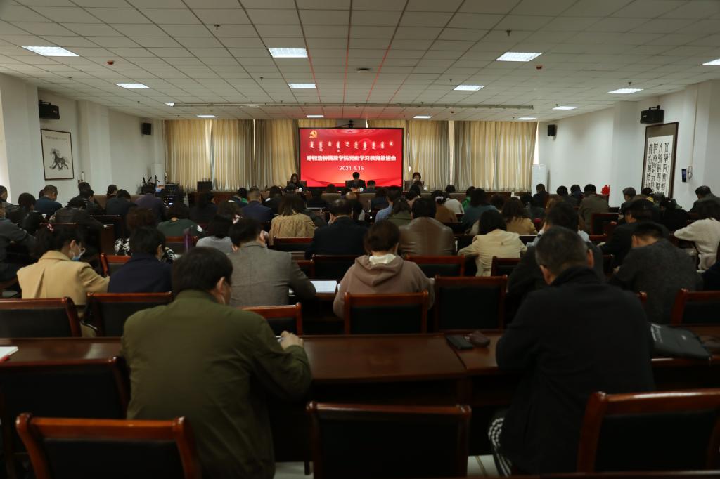 学校党委副书记、党史学习教育领导小组副组长、办公室主任胡春梅从健全组织机构,加强组织领导;制定工作方案,迅速组织推进;聚焦重点任务,抓好专题学习;以自学为主,推动自觉主动学习蔚然成风;结合中心工作,打造特色亮点;丰富形式载体,积极开展实践教学等八个方面对学校前一阶段学校党史学习教育工作进行了总结。同时,按照《学校党委党史学习教育工作方案》,从进一步明确党史学习教育目标任务、高质量完成5个专题学习任务、突出抓好面向学生的宣传教育、聚焦“急难愁盼”做好“我为师生办实事”实践活动、精心组织群众性主题宣传教育活动、精心组织专题研讨等六个方面对学校下一阶段党史学习教育进行了安排部署。