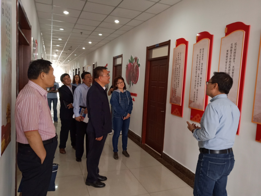 会后,闫慧龙副主任一行在胡春梅副书记的陪同下,参观了学校民族团结进步文化长廊、best365民族团结进步工作展板,调研了自治区民委铸牢中华民族共同体意识研究基地。