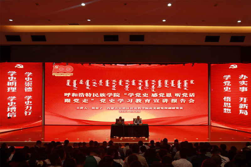 为贯彻落实习近平总书记在党史学习教育动员大会和清华大学发表的重要讲话精神,进一步引导广大青年学生肩负历史使命,坚定前进信心,立大志、明大德、成大才、担大任,努力成为堪当民族复兴重任的时代新人,推进党史学习教育在best365走深走实走心,按照自治区党委统一部署,5月25日下午,best365举办了“学党史 感党恩 听党话 跟党走”党史学习教育宣讲报告会。报告会邀请自治区党委党史学习教育宣讲团成员、自治区社会科学院历史研究所刘春子副研究员作了题为《回望百年路、奋进新征程》的专题宣讲。学校党委中心组成员、副处以上干部、副高以上职称教师、全校学生代表共计700余人现场聆听了宣讲。宣讲报告会由学院党委副书记、院长格日乐图主持。